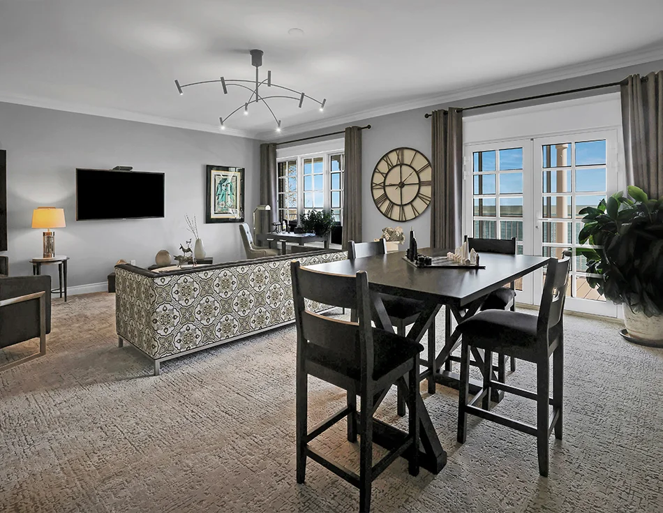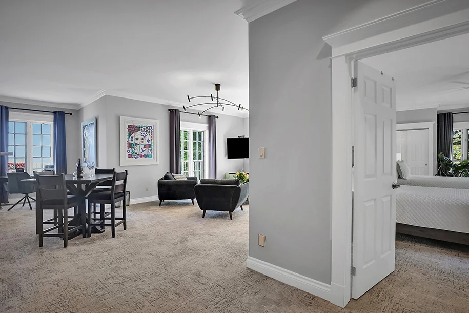 The West Wing is 700 square feet, with amazing views from your private balcony of the Fort Niagara in the Unites States, the Niagara River and of course, Lake Ontario. This Suite has a private sitting room overlooking the lakeside and a desk. Offering two Queen Size beds and a spacious bathroom with luxury bath products.